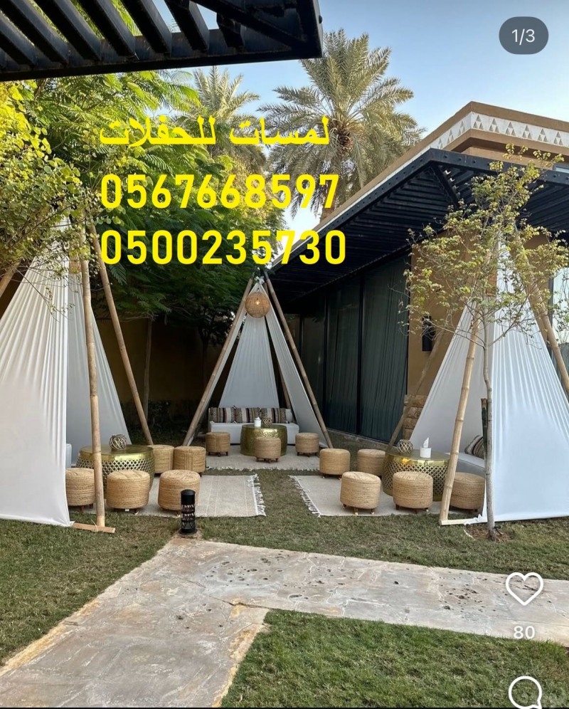 ?مؤسسة لمسات للحفلات تقدم: تجهيز حفلات,تزين قاعات افراح,ايجار جميع انواع المجالس, جلسات ارضيه تاجير طاولات كوكتيل متوفرة بالأنواع : مضيئة , تلبيسة , حديد مع خشب , بللور , تاجير كنب جلد , تاجيرمكيفات خيام متوسطةللايجار, خيام كبيرةللايجار, ايجار كنب ملكي خدمات تنظيم الاحتفالات ,كنب جلد ابيض كراسي فندقية , طاولات طعام وبوفيه , طاولات اجتماعات تزين قاعات,ايجار جميع انواع المجالس, جلسات شالكي الوان مختلفه ايجار خيام,كنب شعبي,ايجار كنب ملكي, ايجار تراثيات تاجير دفايات فيصليه وعاديه وتاجير خيام شفافه وجلسات مودرن تنظيم وتأجير لوازم المناسبات والاحتفالات العامه والخاصه اختار ما يناسبك من الصور للتواصل معنا على الارقام التالية: 8597 766 056 730 235 00 05