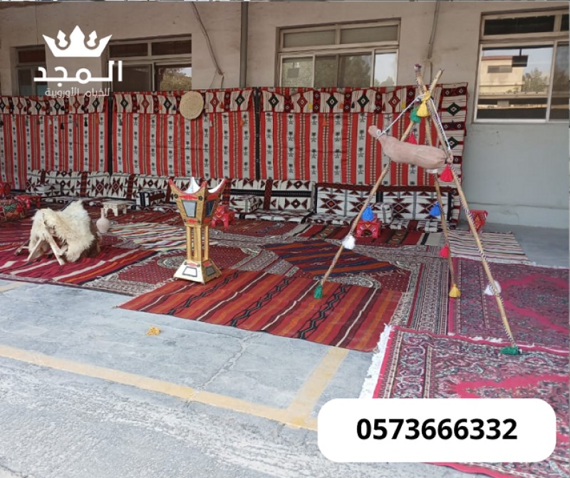 المجد لتأجير لوازم الفعاليات والمناسبات وتجهيز المخيمات في “المجد للخيام”، نضع خبرتنا بين يديك لتقديم أفضل حلول تأجير الخيام الأوروبية الفاخرة، ومستلزمات المناسبات بجودة عالية وتنظيم احترافي. نقدم لكم تأجير ركنيات تراثية جاهزة نقدّم لكِ أجمل الركنيات التراثية لتضيفي لمناسبتك طابعًا أصيلًا يعيد عبق الماضي بروح الحاضر. نوفر تصاميم مستوحاة من التراث العربي والخليجي والمصري، تشمل: جلسات عربية شعبية بالسجاد والمساند اليدوية. ديكورات تراثية مثل الدلال، السلال، الفخاريات، والبخور. أركان تصوير تراثية مثالية لصور الزوار والضيوف. إمكانية التنسيق الكامل للمساحة حسب المناسبة (زفاف – مهرجان – معرض ) الركنيات التراثية هي مساحات أو زوايا يتم تصميمها وإعدادها بطابع تراثي يعكس ملامح الماضي والأصالة، وغالبًا ما تستخدم في المناسبات، المعارض، والمهرجانات التراثية. أهم مميزات الركنيات التراثية: تصميمات أصيلة: استخدام عناصر من التراث مثل السجاد اليدوي، المساند الأرضية، والمجالس العربية. مواد طبيعية: الخشب، الخوص، الفخار، والنحاس. إكسسوارات تراثية: مثل الدلال، المبخرة، الأواني النحاسية، والمشغولات اليدوية. ألوان دافئة: غالبًا الأحمر، البني، الذهبي، والألوان الترابية. إضاءة هادئة: باستخدام الفوانيس أو الإضاءة الصفراء الخافتة لزيادة الإحساس بالدفء. أفكار للاستخدام: ركن ضيافة قهوة وشاي. زاوية تصوير للزوار. عرض منتجات حرف يدوية. مساحة لاستقبال الضيوف في الفعاليات. ????✨ استرجعوا عبق الماضي بأناقة الحاضر ✨???? نوفر لكم **ركنيات تراثية خليجية فاخرة** للتأجير تناسب جميع المناسبات ???? عيشوا أجواء الأصالة مع تفاصيل مستوحاة من التراث الخليجي الأصيل: ???? جلسات عربية بالسدو والمساند التراثية ☕ دلال قهوة، مبخرات، وسجاد شعبي ???? أركان تصوير تراثية تضيف لمناسبتكم لمسة لا تُنسى جاهزين لخدمتكم في الأعراس، المهرجانات، والفعاليات الخاصة ???? نوفر التوصيل والتركيب الكامل مع تنسيق احترافي ???? للتواصل معنا على الرقم التالي: 0573666332 للاطلاع على المزيد من الصور تفضلو بزيارة موقعنا على الرابط التالى: https://almajdtents.com/