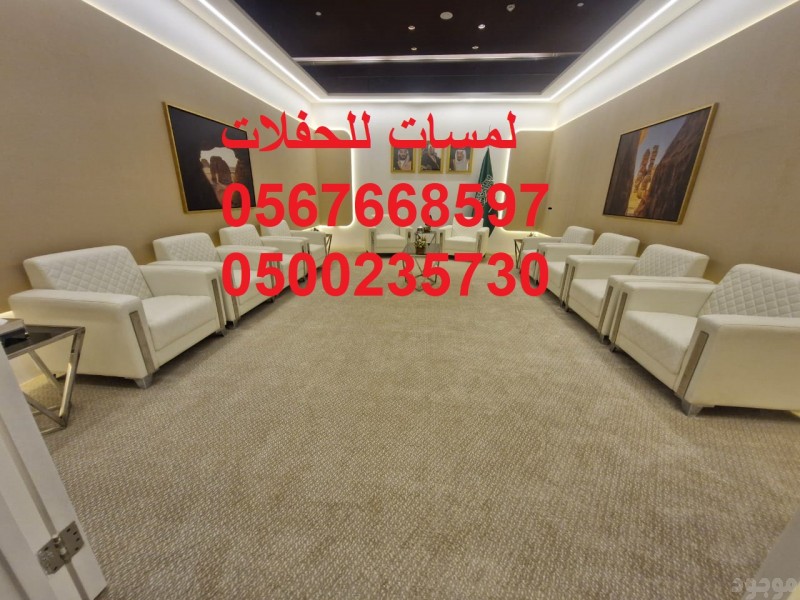 ?مؤسسة لمسات للحفلات تقدم: تجهيز حفلات,تزين قاعات افراح,ايجار جميع انواع المجالس, جلسات ارضيه تاجير طاولات كوكتيل متوفرة بالأنواع : مضيئة , تلبيسة , حديد مع خشب , بللور , تاجير كنب جلد , تاجيرمكيفات خيام متوسطةللايجار, خيام كبيرةللايجار, ايجار كنب ملكي خدمات تنظيم الاحتفالات ,كنب جلد ابيض كراسي فندقية , طاولات طعام وبوفيه , طاولات اجتماعات تزين قاعات,ايجار جميع انواع المجالس, جلسات شالكي الوان مختلفه ايجار خيام,كنب شعبي,ايجار كنب ملكي, ايجار تراثيات تاجير دفايات فيصليه وعاديه وتاجير خيام شفافه وجلسات مودرن تنظيم وتأجير لوازم المناسبات والاحتفالات العامه والخاصه اختار ما يناسبك من الصور للتواصل معنا على الارقام التالية: 8597 766 056 730 235 00 05