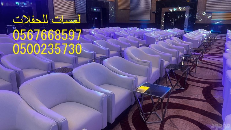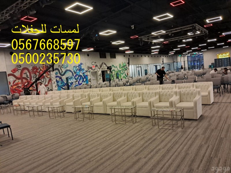 ?مؤسسة لمسات للحفلات تقدم: تجهيز حفلات,تزين قاعات افراح,ايجار جميع انواع المجالس, جلسات ارضيه تاجير طاولات كوكتيل متوفرة بالأنواع : مضيئة , تلبيسة , حديد مع خشب , بللور , تاجير كنب جلد , تاجيرمكيفات خيام متوسطةللايجار, خيام كبيرةللايجار, ايجار كنب ملكي خدمات تنظيم الاحتفالات ,كنب جلد ابيض كراسي فندقية , طاولات طعام وبوفيه , طاولات اجتماعات تزين قاعات,ايجار جميع انواع المجالس, جلسات شالكي الوان مختلفه ايجار خيام,كنب شعبي,ايجار كنب ملكي, ايجار تراثيات تاجير دفايات فيصليه وعاديه وتاجير خيام شفافه وجلسات مودرن تنظيم وتأجير لوازم المناسبات والاحتفالات العامه والخاصه اختار ما يناسبك من الصور للتواصل معنا على الارقام التالية: 8597 766 056 730 235 00 05