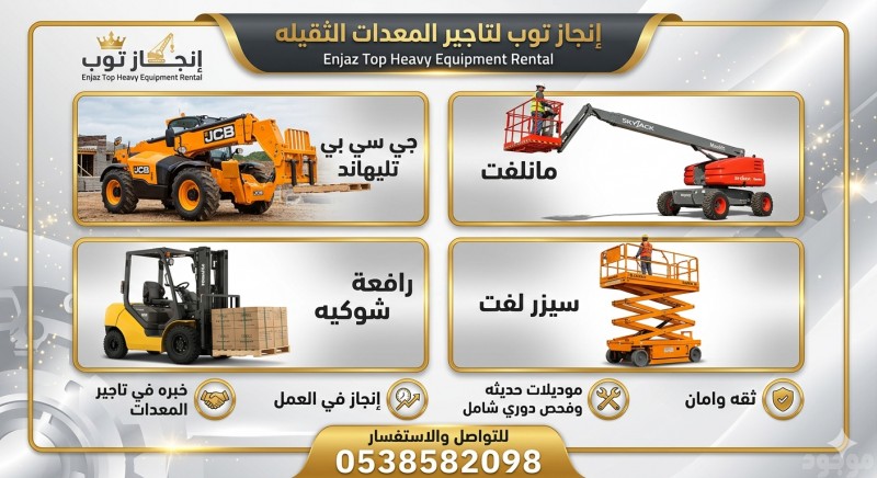 سيزرلفت مان لفت جي سي بي تليهاندر كرينات موبايل للايجار رافعات مقصيه للايجار سقالات كهربائية للايجار