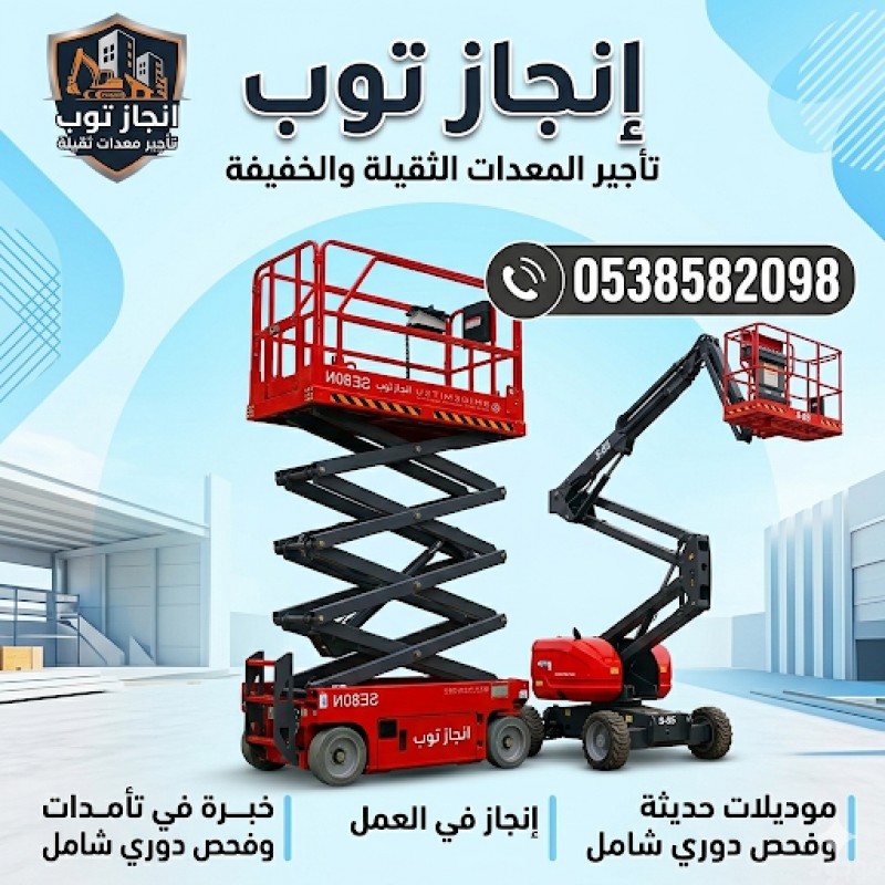 إنجاز توب لتأجير المعدات الثقيلة والخفيفة رافعات شوكية وسيزرلفت جاهزة لمشاريعك اليوم معدات حديثة – صيانة دورية – أسعار منافسة نوفر لك أفضل الحلول لرفع المواد والعمل على الارتفاعات بكل أمان وكفاءة ???? 0538582098